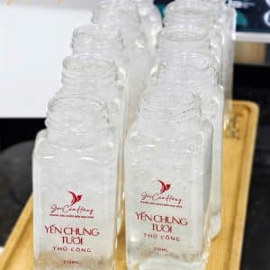 - Quy Cách Đóng Gói Tiện Lợi: Yến Sợi Dài Chưng Tươi được đóng gói trong lọ thủy tinh, với nắp đóng kín giúp bảo vệ sản phẩm khỏi tác động của không khí và vi khuẩn, giữ trọn vẹn hương vị và dưỡng chất. Lọ thủy tinh không chỉ đảm bảo an toàn mà còn mang đến cảm giác sang trọng và tinh tế mỗi khi bạn sử dụng.